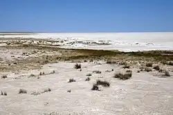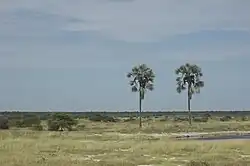 Na obszarze solniska, szczególnie na zachodzie, występuje też palma z gatunku Hyphaene ventricosa, często tworząc kępy wokół słodkowodnych źródeł[1].