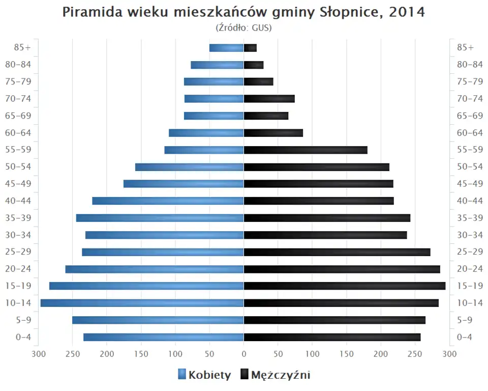 - Piramida wieku mieszkańców gminy Słopnice w 2014 roku[4].