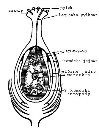 - W zalążni wykształca się łożysko – miejsce wykształcania się i rozwoju zalążków.