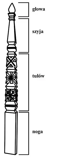 - Słupy nad dziecięcymi grobami były niskie, często dodatkowo pobielane, mało ozdobne, składające się czasami jedynie z głowy i nogi.