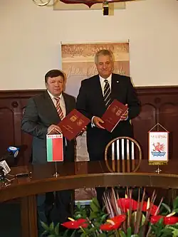 - ↑ Podpisanie umowy partnerskiej Słupska i Grodna. [zarchiwizowane z tego adresu].