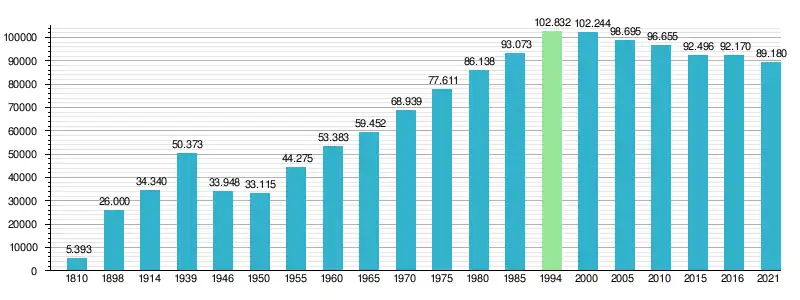 Liczba mieszkańców wzrastała bardzo szybko, w 1914 roku osiągnęła 34 430 osób.