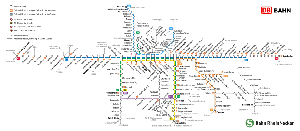 Sieć S-Bahn składa się z 5 linii o łącznej długości 290 km, na terenie landów Nadrenia-Palatynat i Badenia-Wirtembergia, a na krótkich odcinkach w kraju Saary i Hesji. Na sieć składa się 77 stacji obsługiwanych przez 40 EZT typu 425.