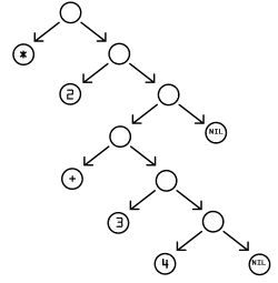 (* 2 (+ 3 4))S-wyrażenie (ang. S-expression skrót od symbolic expression) – to notacja, służąca do zapisu struktury list oraz drzew pod postacią tekstu. Wykorzystywana w językach rodziny Lisp oraz do zapisu tekstowego WebAssembly.