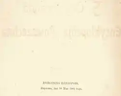 Encyklopedia wydana została na ziemiach polskich zaboru rosyjskiego, dlatego każdy jej tom ma adnotację rosyjskiej cenzury.