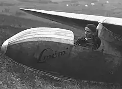 Jednomiejscowy szybowiec wyczynowy w układzie górnopłatu o konstrukcji drewnianej[10].