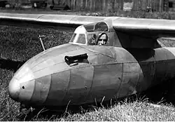 Jednomiejscowy szybowiec wyczynowy w układzie wolnonośnego górnopłatu o konstrukcji drewnianej[13].