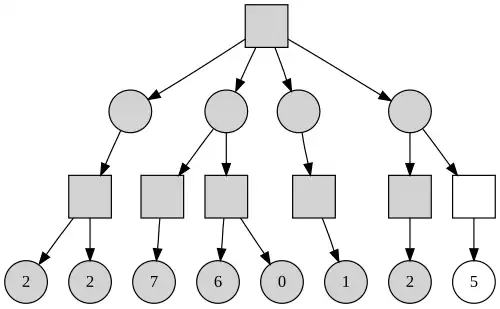 Dana jest kolejka priorytetowa OPEN przechowująca stany gdzie – wierzchołek (używana jest notacja Deweya, oznacza korzeń), – stan rozwiązania dla ( oznacza wierzchołek zamknięty (rozwiązany), a otwarty (nierozwiązany)) oraz – wartość rozwiązania dla OPEN jest posortowana zgodnie z malejącą wartością W przypadku wielu węzłów o tej samej mierze preferowane są wierzchołki położone po lewej stronie drzewa.