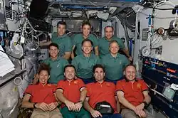 ![]() Od lewej: Sandra H. Magnus, Stephen G. Bowen, Donald R. Pettit, Christopher J. Ferguson, Eric A. Boe, Robert S. (Shane) Kimbrough, Heidemarie M. Stefanyshyn-Piper | |