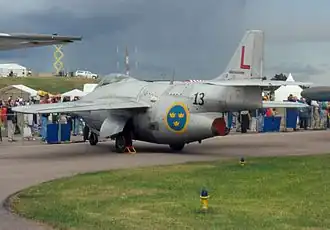 Początkowo zakupiono samoloty de Havilland Vampire i rozpoczęto licencyjną produkcję silników de Havilland Goblin do napędu przerobionego na napęd odrzutowy myśliwca Saab 21.