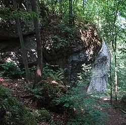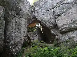 W skałach Sadka znajduje się okno skalne Schroniska Sadek[3].