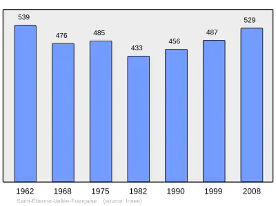 Według danych na rok 1990 gminę zamieszkiwało 456 osób, a gęstość zaludnienia wynosiła 9 osób/km² (wśród 1545 gmin Langwedocji-Roussillon Saint-Etienne-Vallée-Française plasuje się na 539. miejscu pod względem liczby ludności, natomiast pod względem powierzchni na miejscu 59.).