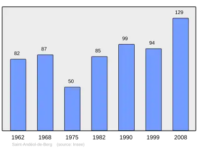 Według danych na rok 1990 gminę zamieszkiwało 99 osób, a gęstość zaludnienia wynosiła 6 osób/km² (wśród 2880 gmin regionu Rodan-Alpy Saint-Andéol-de-Berg plasuje się na 1522. miejscu pod względem liczby ludności, natomiast pod względem powierzchni na miejscu 680.).