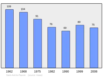 Według danych na rok 1990 gminę zamieszkiwało 69 osób, a gęstość zaludnienia wynosiła 14 osób/km² (wśród 747 gmin Limousin Saint-Avit-le-Pauvre plasuje się na 529. miejscu pod względem liczby ludności, natomiast pod względem powierzchni na miejscu 646.).