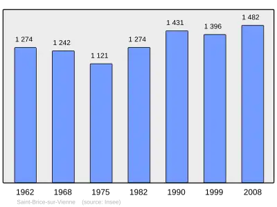 Według danych na rok 1990 gminę zamieszkiwało 1431 osób, a gęstość zaludnienia wynosiła 69 osób/km² (wśród 747 gmin Limousin Saint-Brice-sur-Vienne plasuje się na 75. miejscu pod względem liczby ludności, natomiast pod względem powierzchni na miejscu 321.).