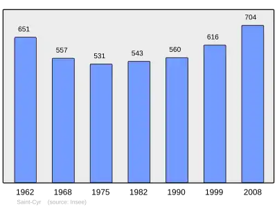 Według danych na rok 1990 gminę zamieszkiwało 560 osób, a gęstość zaludnienia wynosiła 26 osób/km² (wśród 747 gmin Limousin Saint-Cyr plasuje się na 232. miejscu pod względem liczby ludności, natomiast pod względem powierzchni na miejscu 308.).