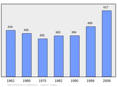 Według danych na rok 1990 gminę zamieszkiwały 384 osoby, a gęstość zaludnienia wynosiła 7 osób/km² (wśród 1545 gmin Langwedocji-Roussillon Saint-Etienne-du-Valdonnez plasuje się na 576. miejscu pod względem liczby ludności, natomiast pod względem powierzchni na miejscu 45.).