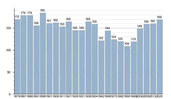 Źródło: Historique des populations communales. insee.fr, 29 grudnia 2022. [dostęp 2023-11-09]. (fr.).