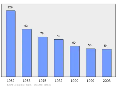 Według danych na rok 1990 gminę zamieszkiwało 60 osób, a gęstość zaludnienia wynosiła 7 osób/km² (wśród 747 gmin Limousin Saint-Gilles-les-Forêts plasuje się na 532. miejscu pod względem liczby ludności, natomiast pod względem powierzchni na miejscu 588.).