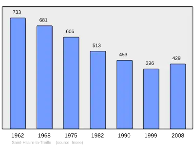 Według danych na rok 1990 gminę zamieszkiwały 453 osoby, a gęstość zaludnienia wynosiła 16 osób/km² (wśród 747 gmin Limousin Saint-Hilaire-la-Treille plasuje się na 270. miejscu pod względem liczby ludności, natomiast pod względem powierzchni na miejscu 192.).
