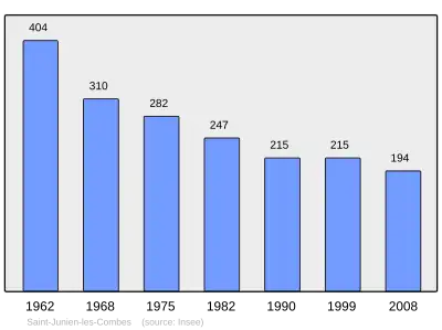 Według danych na rok 1990 gminę zamieszkiwało 215 osób, a gęstość zaludnienia wynosiła 10 osób/km² (wśród 747 gmin Limousin Saint-Junien-les-Combes plasuje się na 418. miejscu pod względem liczby ludności, natomiast pod względem powierzchni na miejscu 309.).