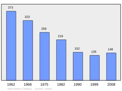 Według danych na rok 1990 gminę zamieszkiwały 152 osoby, a gęstość zaludnienia wynosiła 5 osób/km² (wśród 747 gmin Limousin Saint-Martin-Château plasuje się na 470. miejscu pod względem liczby ludności, natomiast pod względem powierzchni na miejscu 165.).