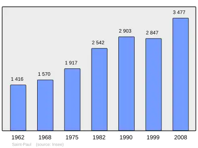 Według danych na rok 2008 gminę zamieszkiwało 3477 osób, a gęstość zaludnienia wynosiła 400 osób/km² (wśród 963 gmin regionu Prowansja-Alpy-Lazurowe Wybrzeże Saint-Paul plasuje się na 210. miejscu pod względem liczby ludności, natomiast pod względem powierzchni na miejscu 760.).