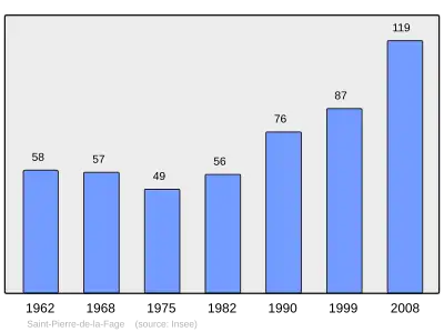 Według danych na rok 1990 gminę zamieszkiwało 76 osób, a gęstość zaludnienia wynosiła 4 osoby/km² (wśród 1545 gmin Langwedocji-Roussillon Saint-Pierre-de-la-Fage plasuje się na 825. miejscu pod względem liczby ludności, natomiast pod względem powierzchni na miejscu 409.).