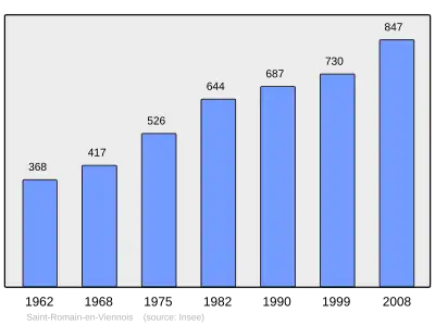 Według danych na rok 1990 gminę zamieszkiwało 687 osób, a gęstość zaludnienia wynosiła 76 osób/km² (wśród 963 gmin regionu Prowansja-Alpy-W. Lazurowe Saint-Romain-en-Viennois plasuje się na 431. miejscu pod względem liczby ludności, natomiast pod względem powierzchni na miejscu 720.).