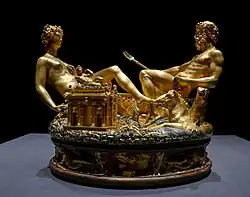 Rzeźba symbolizuje planetę Ziemię – dwie postacie siedzące, męska i kobieca, z przeplecionymi nogami przedstawiają Morze i Ląd. Na styku morza i lądu – Posejdona, boga morza i Demeter, bogini ziemi – tworzy się sól. Wspaniały opis tego arcydzieła sztuki złotniczej i jego idei pochodzi bezpośrednio od autora. Benvenuto Cellini pozostawił bowiem pamiętnik[1], w którym szeroko opisuje samo dzieło jak i okoliczności towarzyszące jego zamówieniu i wykonaniu.