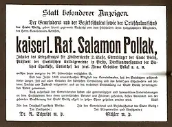 Salomon Pollak zmarł 19 kwietnia 1920. Został pochowany w Alei Zasłużonych na cmentarzu żydowskim w Bielsku. Nagrobek został skradziony w czasie II wojny światowej. Nowy, ufundowany przez mieszkańców miasta, odsłonięto 23 kwietnia 2009[4].