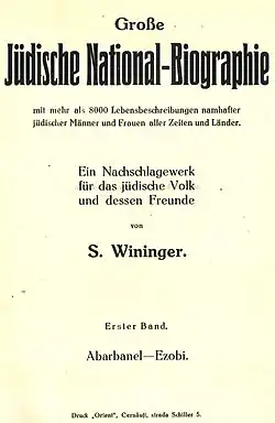 Salomon Wininger (też Schlomo Wininger; ur. 13 grudnia 1877 w Gura Humorului, zm. 23 listopada 1968 w Ramat Ganie) – austriacko-izraelski biografista.