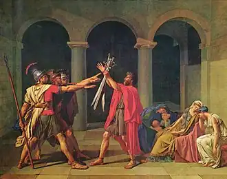 Obraz Przysięga Horacjuszy z 1784, namalowany przez francuskiego malarza Jacques’a–Louis Davida (1748–1825), bywa niekiedy uznawany za pierwowzór salutu rzymskiego, mimo że trzej bracia na nim przedstawieni nie salutują, lecz wyciągają ręce po miecze trzymane przez ich ojca[3].