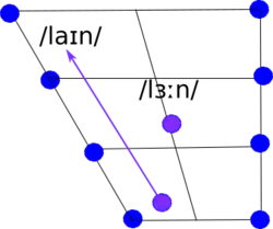 Nie jest możliwe, by narządy mowy podczas artykulacji samogłoski były idealnie statyczne, najczęściej towarzyszy im jakiś ruch, na przykład przy wymowie angielskiego słowa learn /lɜːn/ w standardzie Received Pronunciation; w niektórych przypadkach, np. dyftongów, przesunięcie jest jeszcze bardziej oczywiste, np. w wypadku słowa line /laɪn/. Samogłoski czyste zaznacza się kropką, która pokazuje najwyższą pozycję języka, lub kołem, gdyż nadmierna precyzja przy zaznaczaniu samogłosek jest nieodpowiednia w przypadku osobistych odczuć słuchowych. Następnie strzałka wskazuje sposób przemieszczania się języka do pozycji końcowej[22].