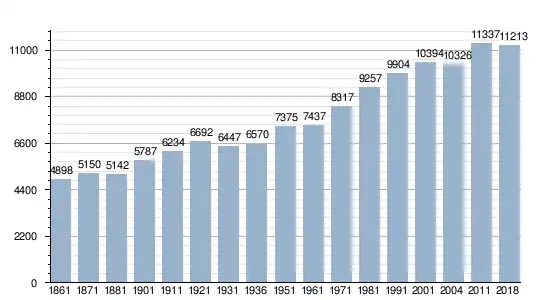 W roku 2018 gmina była zamieszkiwana przez 11213 osób[1].