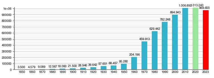 Wykres liczby ludności miasta San Jose na przestrzeni ostatnich 170 lat[13].