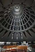 Budynek składa się z dwóch poziomów (sanktuarium i krypty) zwieńczonych stożkowym, żebrowanym, żelbetowym dachem o łącznej wysokości 103 metrów. Wysokość wewnętrzna wynosi 94,30 metra, a czubek stożka wieńczy brązowa statua Maryi[1].