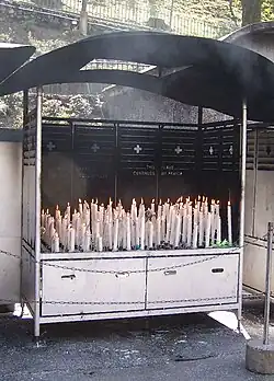 Nieodłącznym elementem kultu Matki Bożej w Lourdes są świece płonące nieustannie w grocie Massabielle. Zwyczaj zapalania świec w grocie narodził się podczas czwartego objawienia, 19 lutego 1858, kiedy Bernadetta Soubirous za namową ciotki przyniosła ze sobą świecę i trzymała ją zapaloną podczas objawienia; kontynuowała ten gest do 14. objawienia[29].