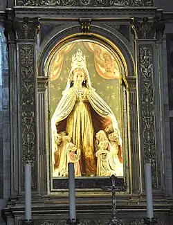 - Statua Madonny – autor – Nicolò z Wenecji. Postać Madonny wyrzeźbiona jest z miękkiej skały miejscowego pochodzenia. Odwzorowuje temat ikonograficzny Matki Bożej Miłosierdzia, często spotykany w XV w. na ziemiach weneckich. Madonna okrywa swym płaszczem mieszkańców Vicenzy, którzy u niej szukają ratunku. Statua mierzy 170 cm wysokości. Korona i naszyjnik z pereł pochodzą z 1900. Zostały wykonane przez złotników z Vicenzy, a podarowane przez kard. Giuseppe Sarto, patriarchę Wenecji, późniejszego papieża Piusa X, z okazji koronacji, która miała miejsce 25 sierpnia 1900[2].