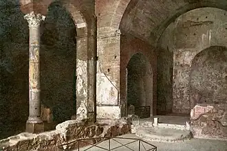 - ↑ Najdalsza część z freskami mogła też (według innych przypuszczeń) stanowić pomieszczenie gwardii pałacowej (Enciclopedia dell’arte antica…, t. 6, s. 819).