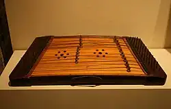 Jest to chordofon, na którym gra się przy użyciu dwóch drewnianych pałek. Ma 70 strun. Kaszmirska wersja ma bardziej prostokątny kształt i zazwyczaj 72 struny. Santur trzeba stroić do każdego utworu.