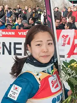 Dwa tygodnie później w Hinterzarten zwyciężyła w konkursie drużynowym razem z Yūki Itō, Kaori Iwabuchi i Yūką Setō[129]. Następnego dnia w konkursie indywidualnym zajęła trzecie miejsce[130]. Następny swój start zaliczyła w połowie stycznia 2018 roku w Sapporo, gdzie w pierwszym konkursie stanęła na najniższym stopniu podium[131], a w drugim konkursie na drugim jego stopniu[132]. Kolejne zawody, które rozgrywane były w Zaō zakończyła kolejno na czwartym[133] oraz na trzecim miejscu[134]. W rozgrywanym tam drugim w sezonie konkursie drużynowym podobnie jak w pierwszym stanęła na najwyższym stopniu podium w niezmienionym składzie[135]. Pod koniec miesiąca w Ljubnie plasowała się na trzecim[136] i czwartym miejscu[137].