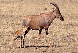 - ↑ Damaliscus lunatus, [w:] The IUCN Red List of Threatened Species (ang.).
