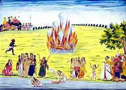 - ↑ "Woman jumps into husband's funeral pyre". articles.timesofindia.indiatimes.com. [zarchiwizowane z tego adresu (2012-11-05)].. The Times of India (Raipur). October 13, 2008
