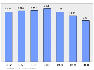 Według danych na rok 1990 gminę zamieszkiwało 1129 osób, a gęstość zaludnienia wynosiła 37 osób/km² (wśród 747 gmin Limousin Sauviat-sur-Vige plasuje się na 104. miejscu pod względem liczby ludności, natomiast pod względem powierzchni na miejscu 164.).