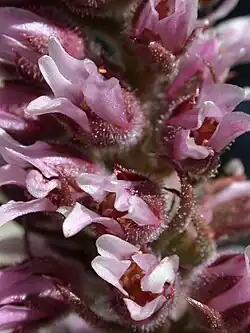 - Obupłciowe, pięciokrotne, skupione po maksymalnie 300 w groniaste kwiatostany długości od 10 do 40 cm. Korona biało-różowa, dzwonkowata[4].