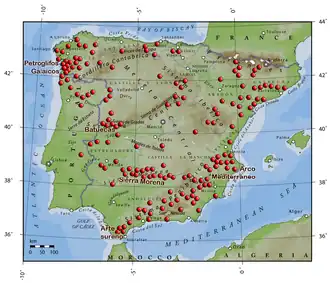 Do zabytków schematycznej sztuki iberyjskiej należą malowidła skalne, występujące przeważnie w schroniskach skalnych w pobliżu zespołów megalitycznych. Niekiedy obecne są na ścianach dolmenów. Malowidła przedstawiają schematyczne (tj. uproszczone) postacie ludzi i zwierząt[1]. Po raz pierwszy dzieła schematycznej sztuki iberyjskiej skatalogował Henri Breuil w latach 1913–1919.