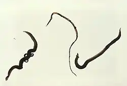 - ↑ Weinland DF: Human cestoides. An essay on the tapeworms of man giving a full account of their nature, organization, and embryonic development; the pathological symptoms they produce, and the remedies which have proved successful in modern practice. To which is added an appendix, containing a catalogue of all species of helminthes hitherto found in man. Cambridge, Massachusetts: Metcalfe and Co, 1858, s. 93.