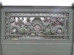 Most posiada żeliwne balustrady, ozdobione zaprojektowanymi przez Karla Friedricha Schinkla mitologiczno-morskimi motywami, na które składają się hippokampy, trytony i delfiny[1][5]. W rzędach balustrad, nad kamiennymi filarami mostu stoją wykonane z czerwonego granitu cokoły, na których są ustawione wysokie, stworzone z szarego marmuru postumenty[1][10][5]. Postumenty są udekorowane medalionami zawierającymi reliefy przedstawiające orły[10][1].