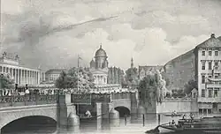 Plany dwóch założonych w XII wieku po obu stronach Sprewy na obszarze obecnej berlińskiej dzielnicy Mitte osad: Berlina i Kölln pokazują, że na miejscu dzisiejszego mostu już w XV wieku stała pierwsza przeprawa[6][5]. Była to drewniana budowla o siedmiu łukach i podnoszonej środkowej części, zbudowana na jarzmie palowym. Most ten nazywano Hundebrücke (pol. „Most Psi”), gdyż często przekraczali go członkowie towarzystw myśliwskich ze swoimi psami, podążający drogą z zamku berlińskiego do obszaru łowieckiego w parku Großer Tiergarten[5].
